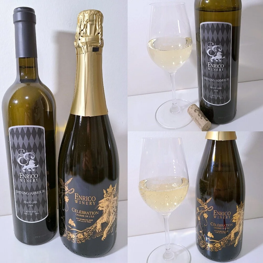 Today I tasted Pinot Gris two ways from Enrico Winery. The two wines I tasted are their Shining Armour Pinot Gris 2018 and their Celebration Charme de l’ile 2019. The latter wine is a sparkling wine, made with the Charmat (tank) method. Charme de l’ile (Island charm) is a term for this type of sparkling wine made by some wineries located on Vancouver Island only.